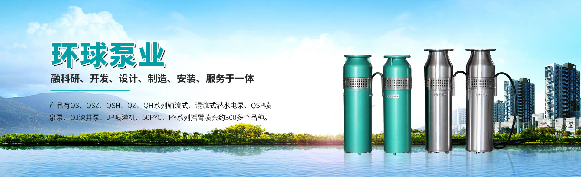 環(huán)球泵業(yè) 產品展示公司噴泉泵產品有QJ系列潛水泵、QSP系列噴泉泵、QS系列農用泵、不銹鋼水泵等約300多個品種。